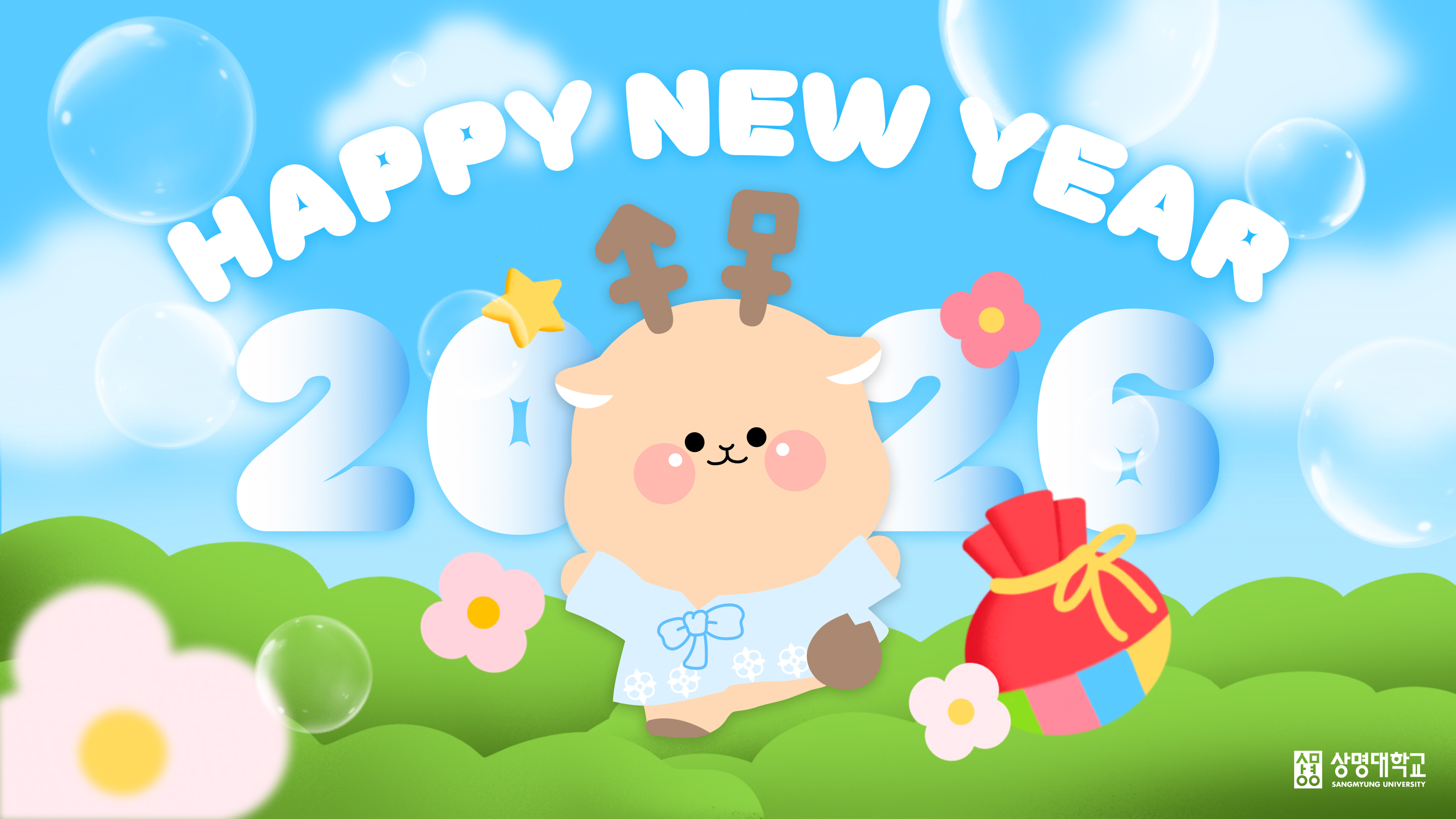 2026년 새해를 맞이하여 우리 대학교 공식 캐릭터인 ‘수뭉이’를 활용한